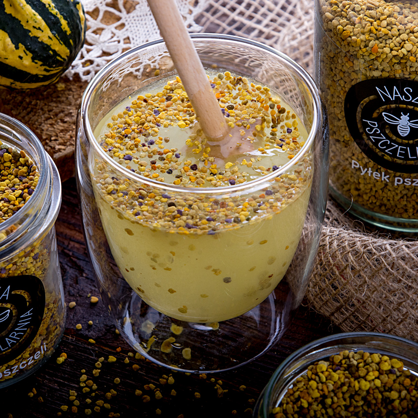 Połączenie z miodem: Spożywanie pyłku pszczeli w połączeniu z miodem może nie tylko poprawić smak, ale także zwiększyć przyswajalność jego składników odżywczych, ponieważ miód działa jak naturalny emulgator ułatwiający wchłanianie.