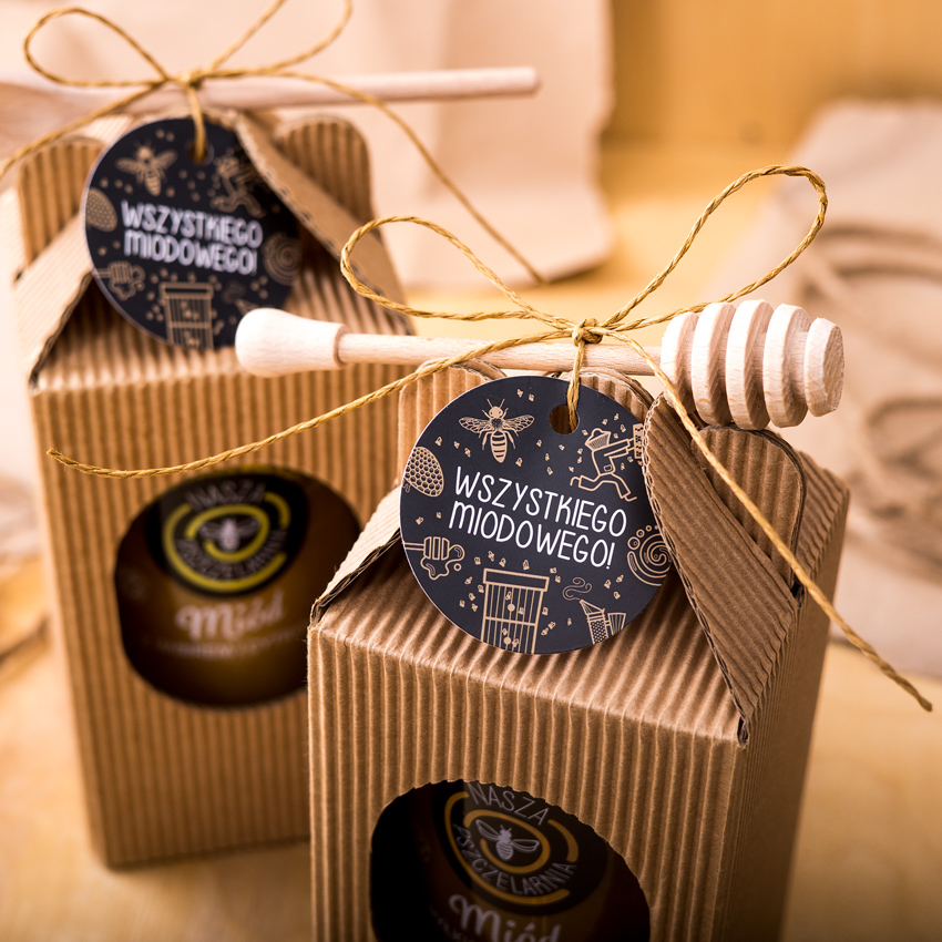 Skoro miód jest tak wspaniałym produktem, dlaczego by nie zrobić z niego eleganckiego zestawu prezentowego? W Naszej Pszczelarni przygotowaliśmy dla Ciebie zestawy prezentowe z miodem na każdą okazję. W eleganckim pudełku z okolicznościową opaską możesz stworzyć własną, spersonalizowaną kompozycję. Możesz wybrać kolor opaski: biały, beżowy czy różowy, a do tego dobrać zawieszkę z dedykowaną wiadomością. Do pudełka możesz dobrać nawet cztery różne smaki miodu, co sprawi, że obdarowana osoba poczuje się słodko i wyjątkowo.