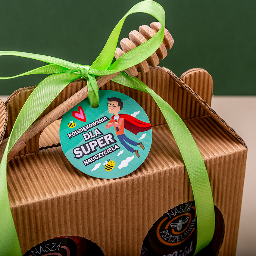 W tym eleganckim kartoniku z zawieszką okolicznościową znajdziesz idealny upominek dla Pani nauczycielki lub Pana nauczyciela. Wybierz 2 smaki miodu dla obdarowywanej osoby, niech poczuje się naprawdę słodko!